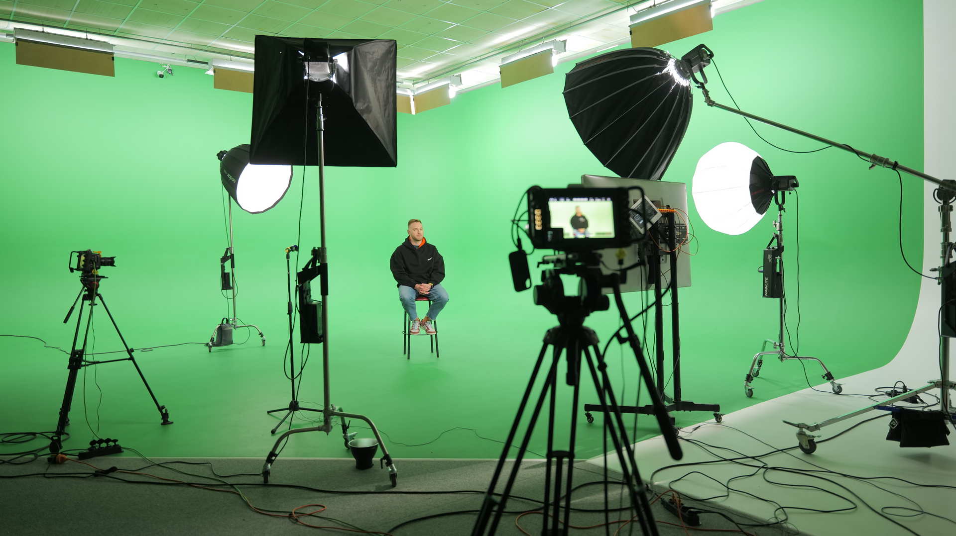 Ми створюємо повністю контрольоване віртуальне середовище, де локації, світло та ефекти змінюються миттєво без фізичних декорацій.